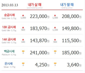 금 시세 살 때와 팔 때의 가격 차이